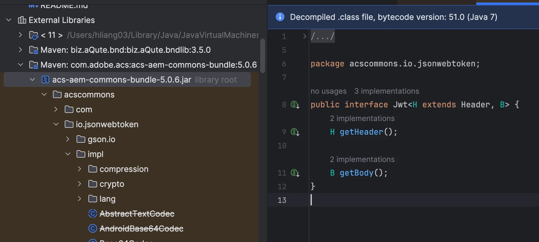 I found that Jwt is exist in acs-aem-commons-bundle-5.0.6.jar: