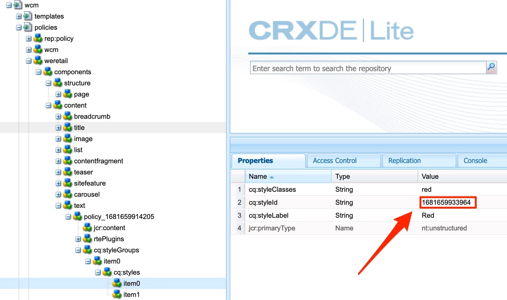 As you can see there are 2 styles available and base on style id configured in cq:template style representing red color class will be applied by default, when author adds component into page.