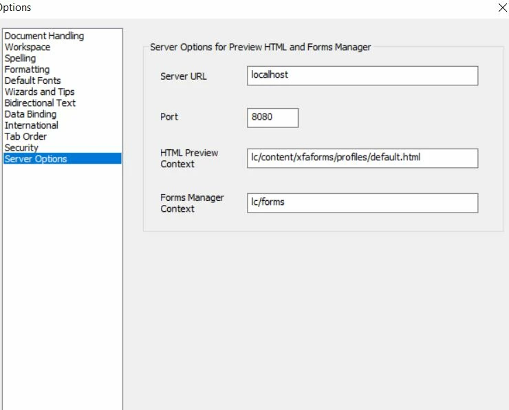 When I try to preview the xdp forms as HTML in my designer, I consistently get the error " Please check Server URL in Server Options page in Options dialog from Tools menu". I am using ES4 designer version 11.