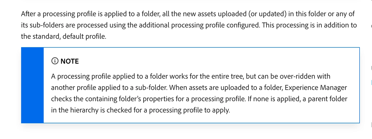 I understand if you want to upload indesign assets onto Adobe Assets it is best to turn on FPO profiles. I also see that the processing profiles are against folders. One question I have is if I apply the processing profile to a parent folder what happens to the child folders, does it also pick up the processing profiles?