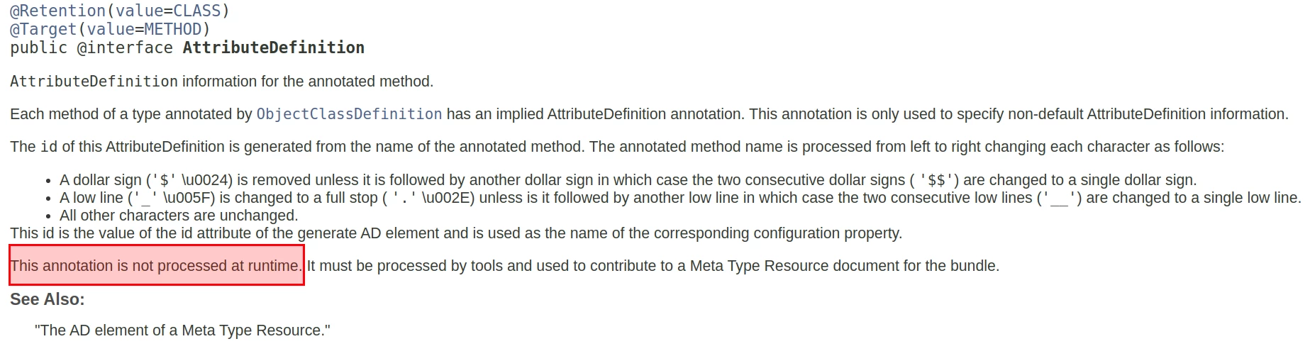 If we look at the @AttributeDefinition documentation we can see that it is processed at compile-time and not run-time, so no possibility for the backend to call an API to populate a list of option 😕😕