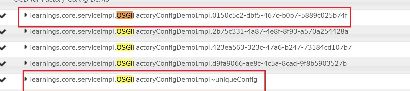 To make a OSGI factory configuration, provided factory = true using R6 annotations and was able to create factory configs, but when uploaded the configs via xmls using a unique identifier, that identifier is not picked in the display name.