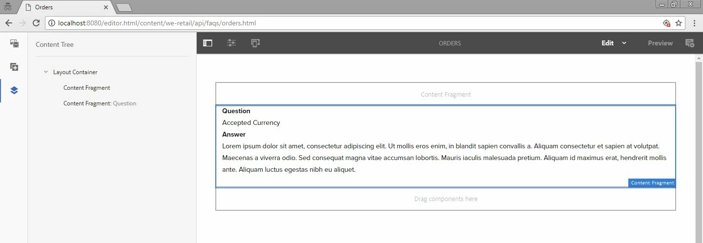 as we can see i have a content fragment in the page, but when i publish the page it look like this: