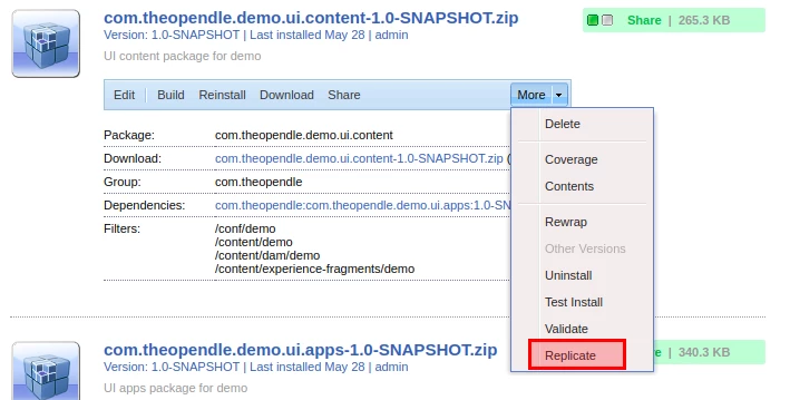 1. Once you've configured your replication agent to replicate to Publisher, you can replicate packages through CRX DE with the following option: