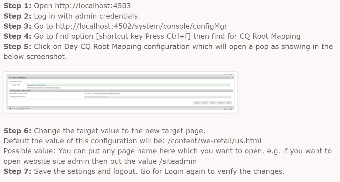 If you wish to change the default landing page of AEM Please follow below points :