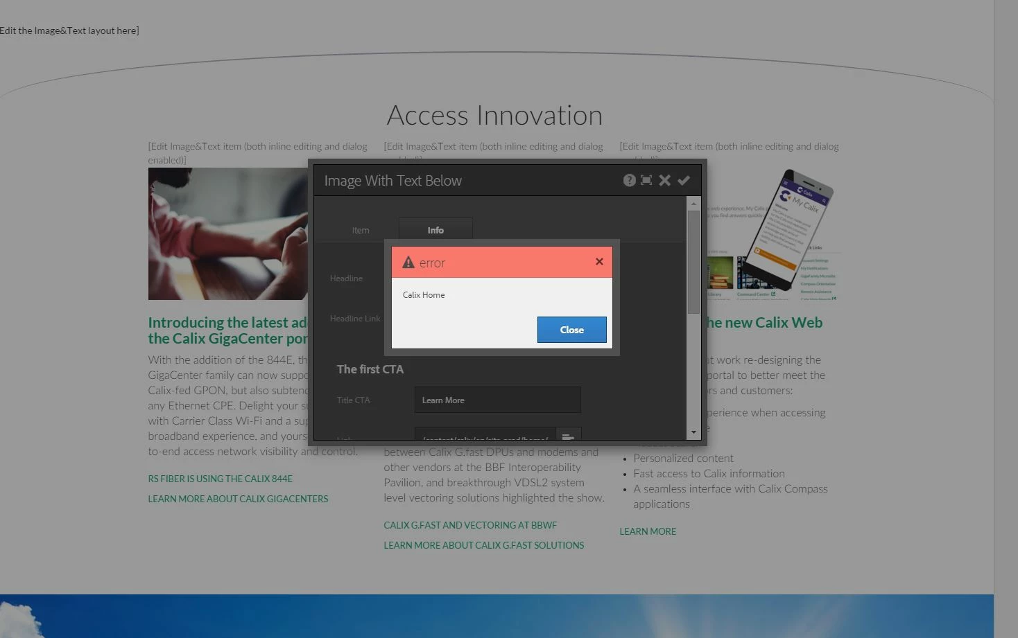 So we have a custom component that has images, videos, CTAs, etc. as options. Every so often, the component gives me a generic "error" popup when I try to save the edits in the component. I'm told by our technical team that the solution is either to PUBLISH and then save the component changes (which does work) or to deactivate the page. The problem is that it isn't a great solution when I have pages that require review before publishing, so it's not a viable solution. Anyone else ever have issues with this?
