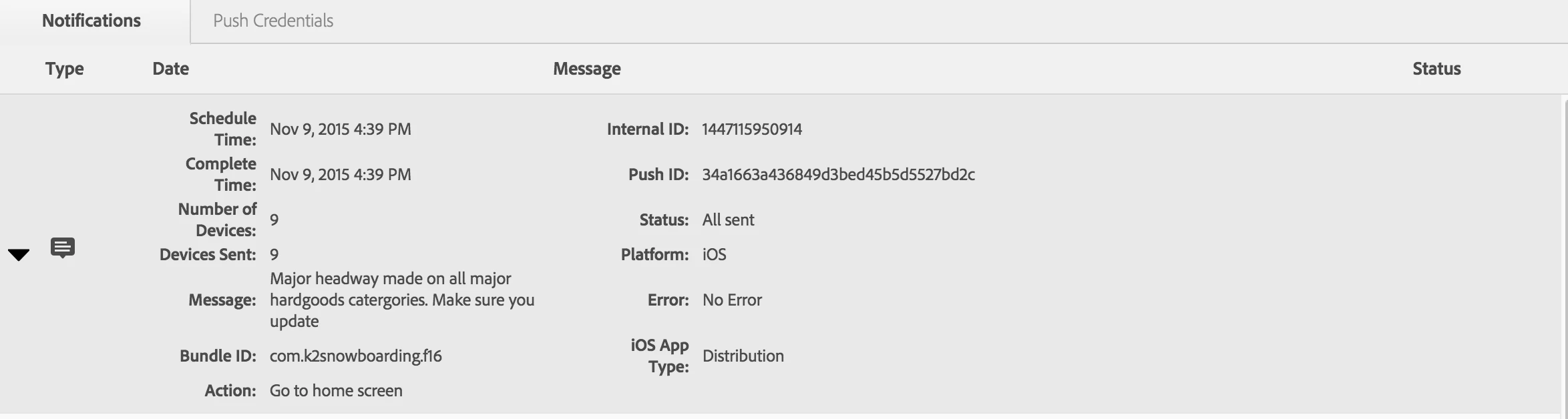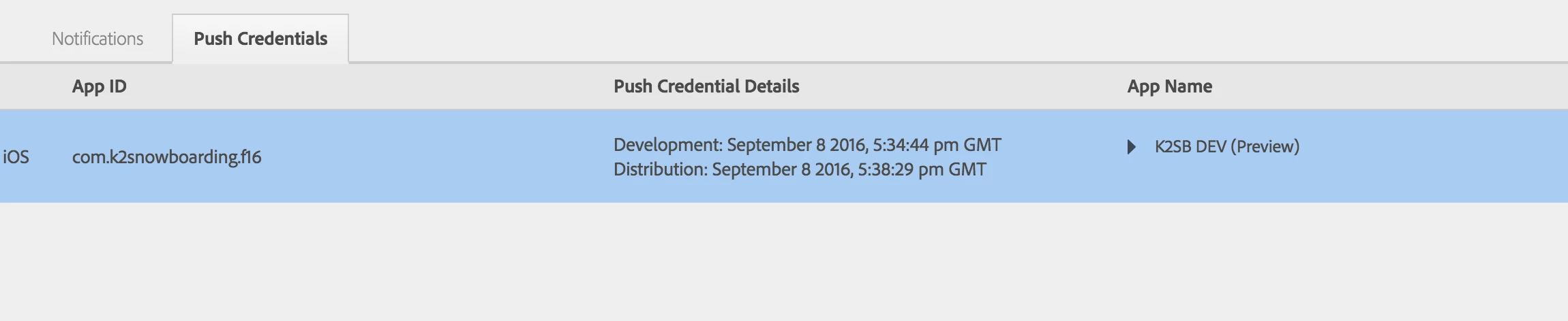 push notifications app ID's not showing
