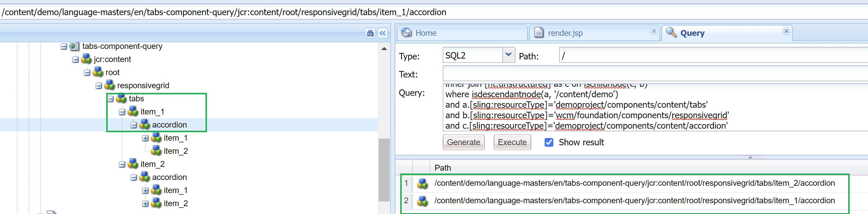 This query returns the tabs and their child components (thanks to nodedepth). But the best for me would be to refine the query to only get a collection of accordions. I don't need the tabs, I only need the accordions located into the tabs. Is there a way to do this?