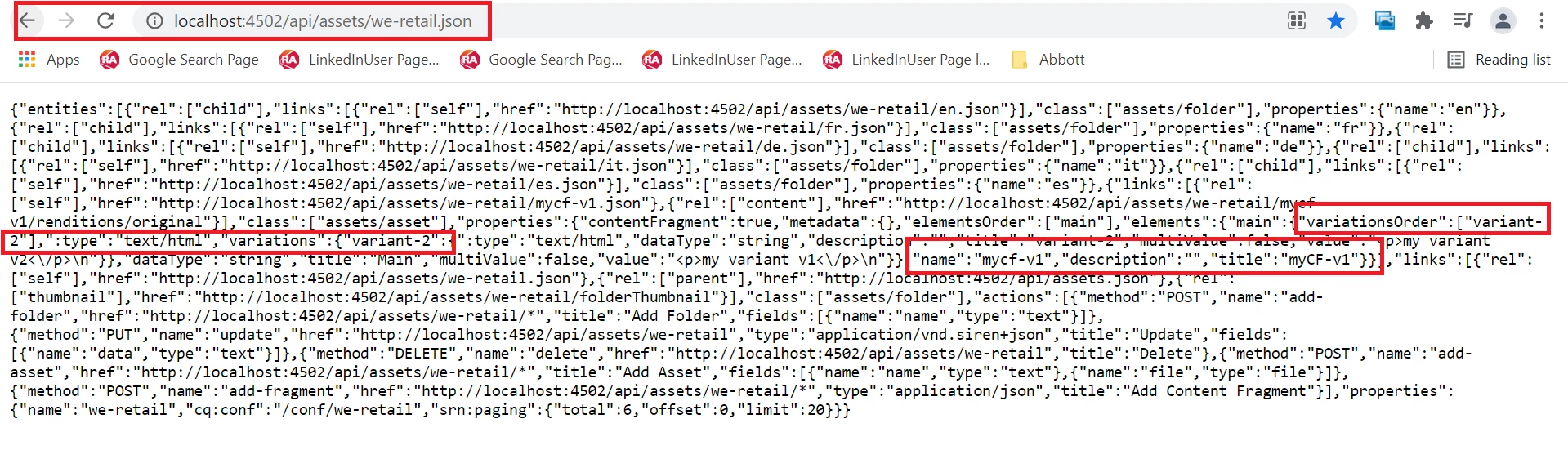 Query for getting content fragment variants as JSON