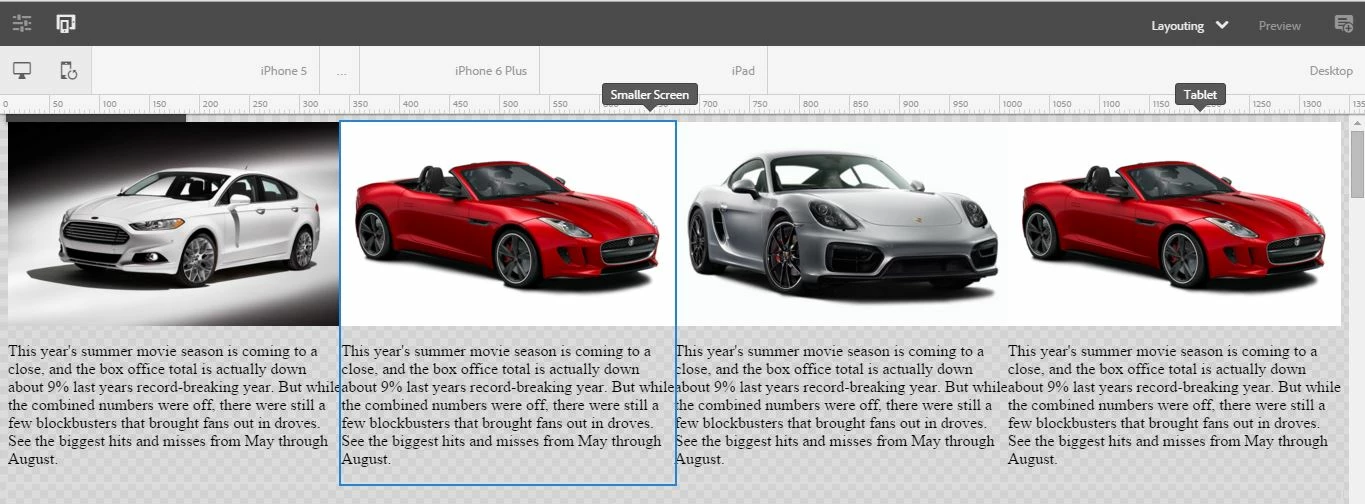 In layouting mode I kept four components set side by side (desktop.jpeg).