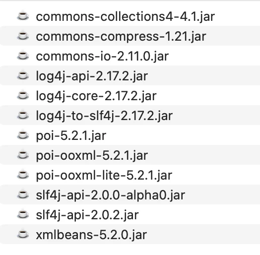 I need to use apache poi library to read excel file in AEM6.5 instance. I have created sample maven project and included all dependencies required to read excel file in maven project.