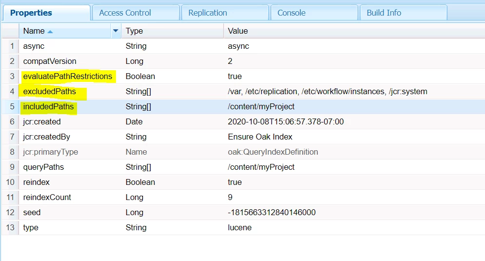 In order to avoid that we have added few properties to the /oak:index/cqAuditLucene as highlighted below