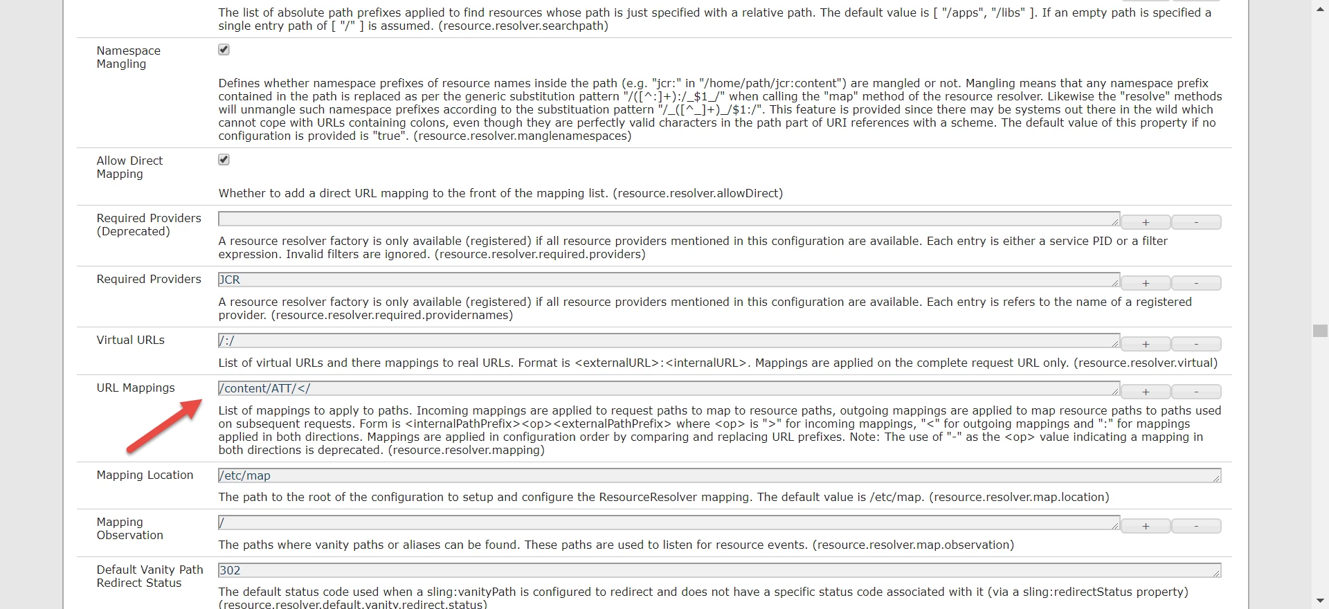I've configured on the Apache Sling Resource Resolver Factory in the URL Mappings field.