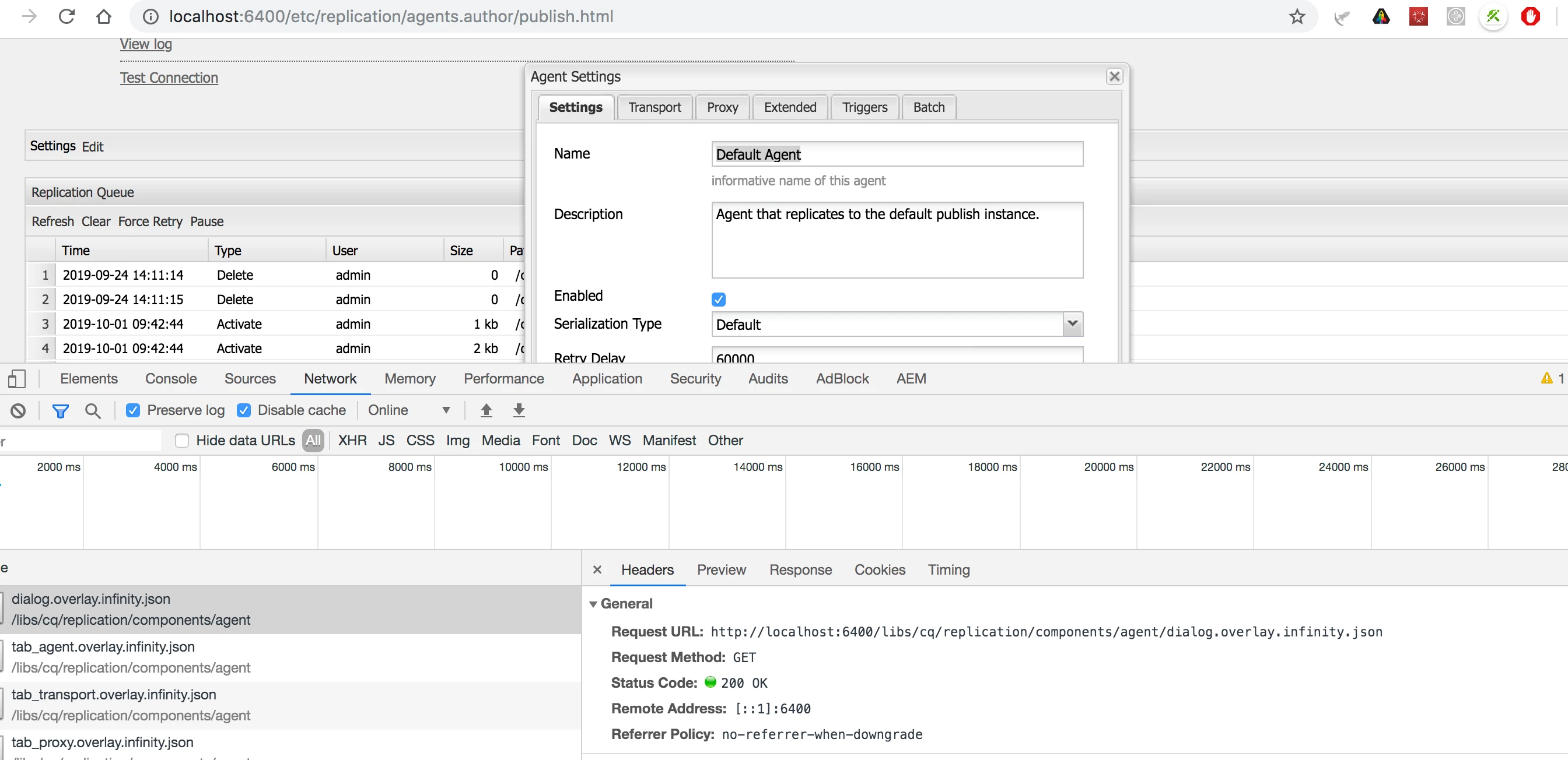 10.0.2.2 - admin 03/Oct/2019:13:51:42 +0000 "GET /libs/cq/replication/components/agent/dialog.overlay.infinity.json HTTP/1.1" 404 363 "http://localhost:4503/etc/replication/agents.author/publish.html" "Mozilla/5.0 (Windows NT 10.0; Win64; x64) AppleWebKit/537.36 (KHTML, like Gecko) Chrome/77.0.3865.90 Safari/537.36"