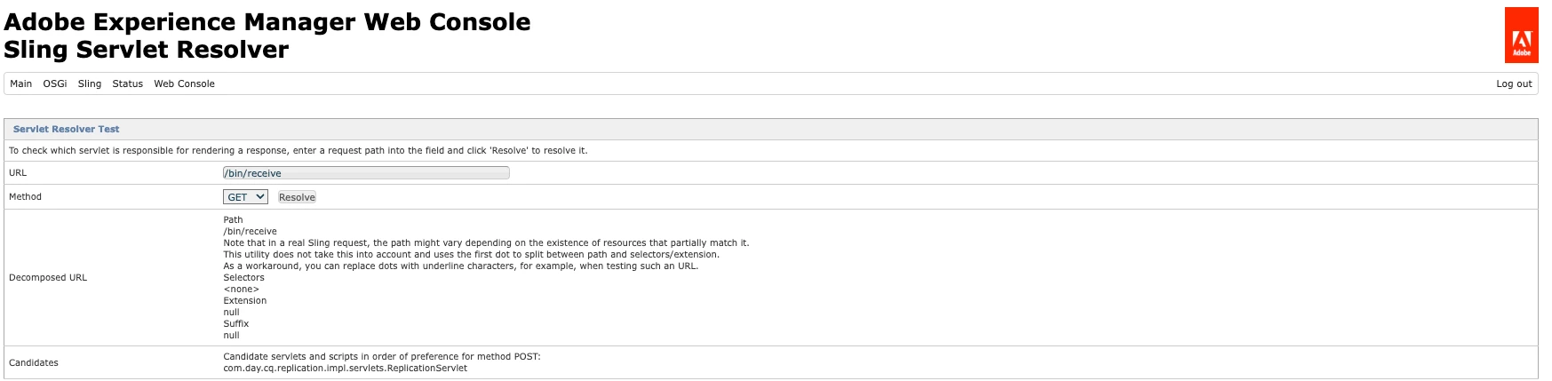 Replication issue - /bin/receive.servlet is not in available search paths