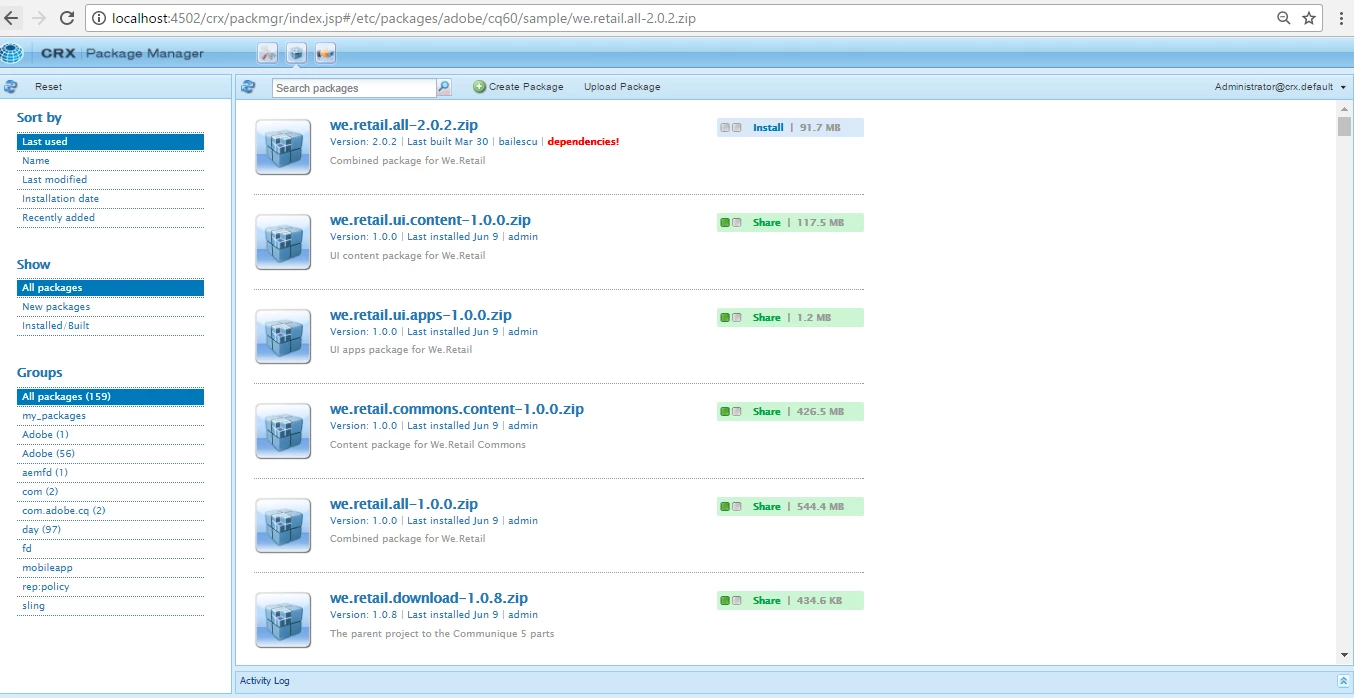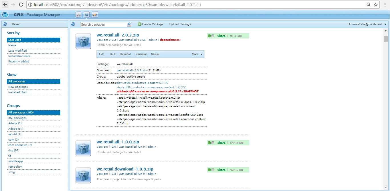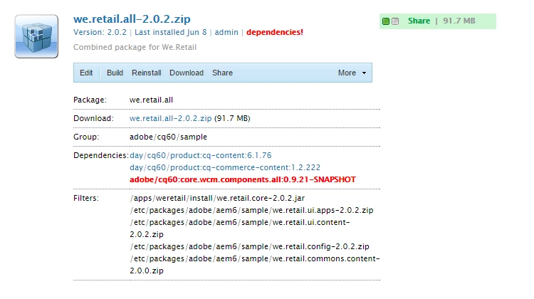 I am trying to install we retail package on AEM 6.2. however I'm am facing unresolved dependencies in the package. Can anyone help me with this?