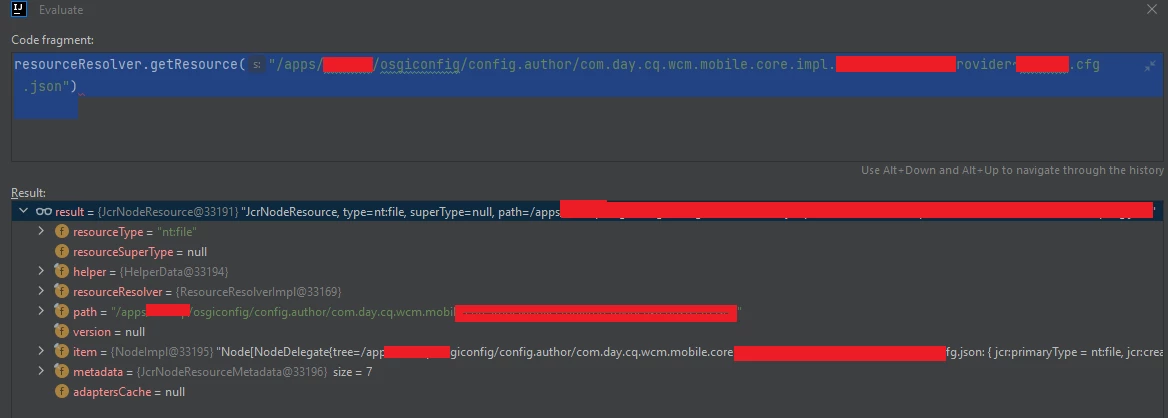 I'm having a problem with the ResourceResolver locating a configuration xml file in my local author instance under apps. Despite attempting various approaches, such as specifying relative and absolute paths, the configResource continues to return null for the file resource. Also the ResourceResolver is using a AEM service user account to access the file. Here's the path for CONFIG_FILE_NAME - "/apps/site/config.author/com.mim.aem.core.service.validpaths.impl.ValidPathsServiceImpl.xml";