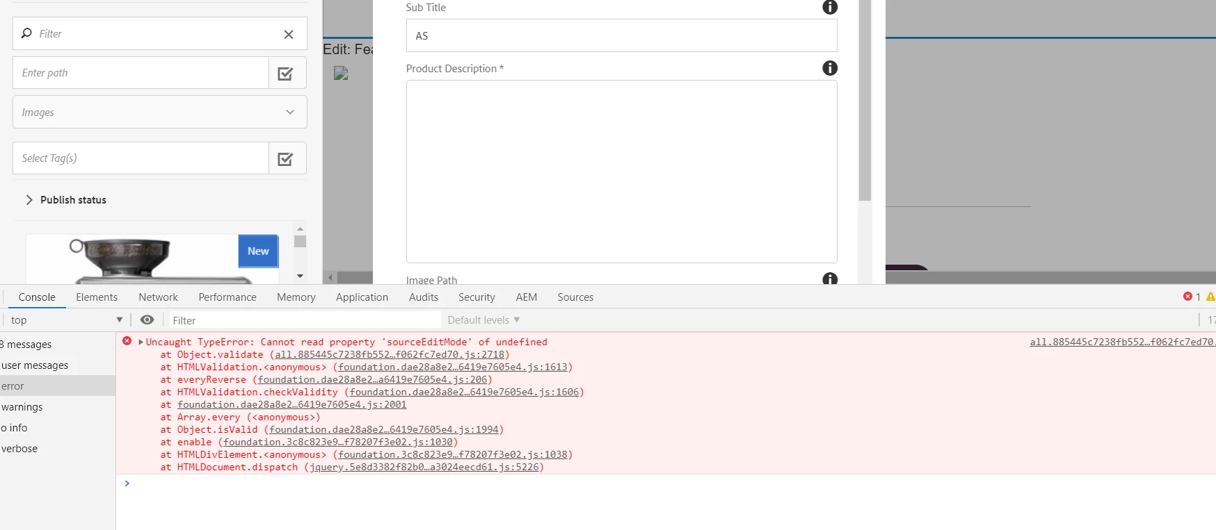 When I open touch UI dialog I am not able to edit the rich text box field its showing below error.