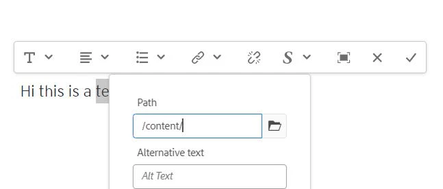 | Current/Experienced Behavior: | When we have to hyper link a page or content fragment , then while entering any text we do not get any suggestions and have to manually type full path or use path browser. It would be great if the path field can give suggestions of page paths as typing. |