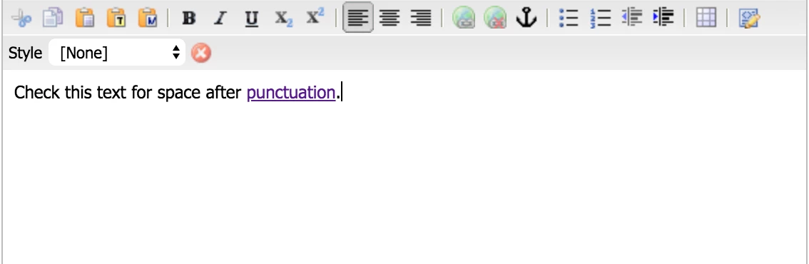 I am using rich text editor in one our components. When I add a hyperlink to a word that has a punctuation after it say comma(,) or dot(.), the RTE adds a space. Could you please let me know the reason for this and a way to fix this.