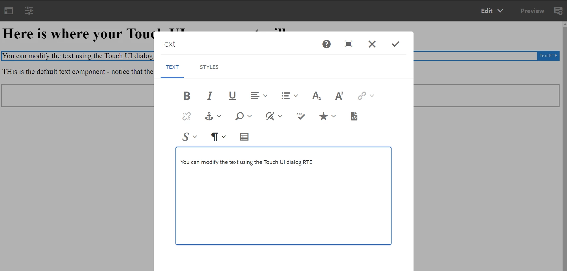 Rich text editor plugins not visible on touch UI dialog in AEM 6.3 | Community