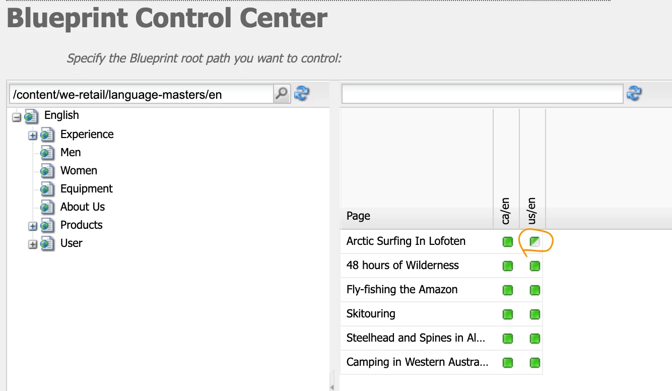 To check/manage your live copies connection to their blueprints you can use the blueprints (http://localhost:4502/etc/blueprints.html) interface. The pages where you detached only properties and/or components will look like this one: