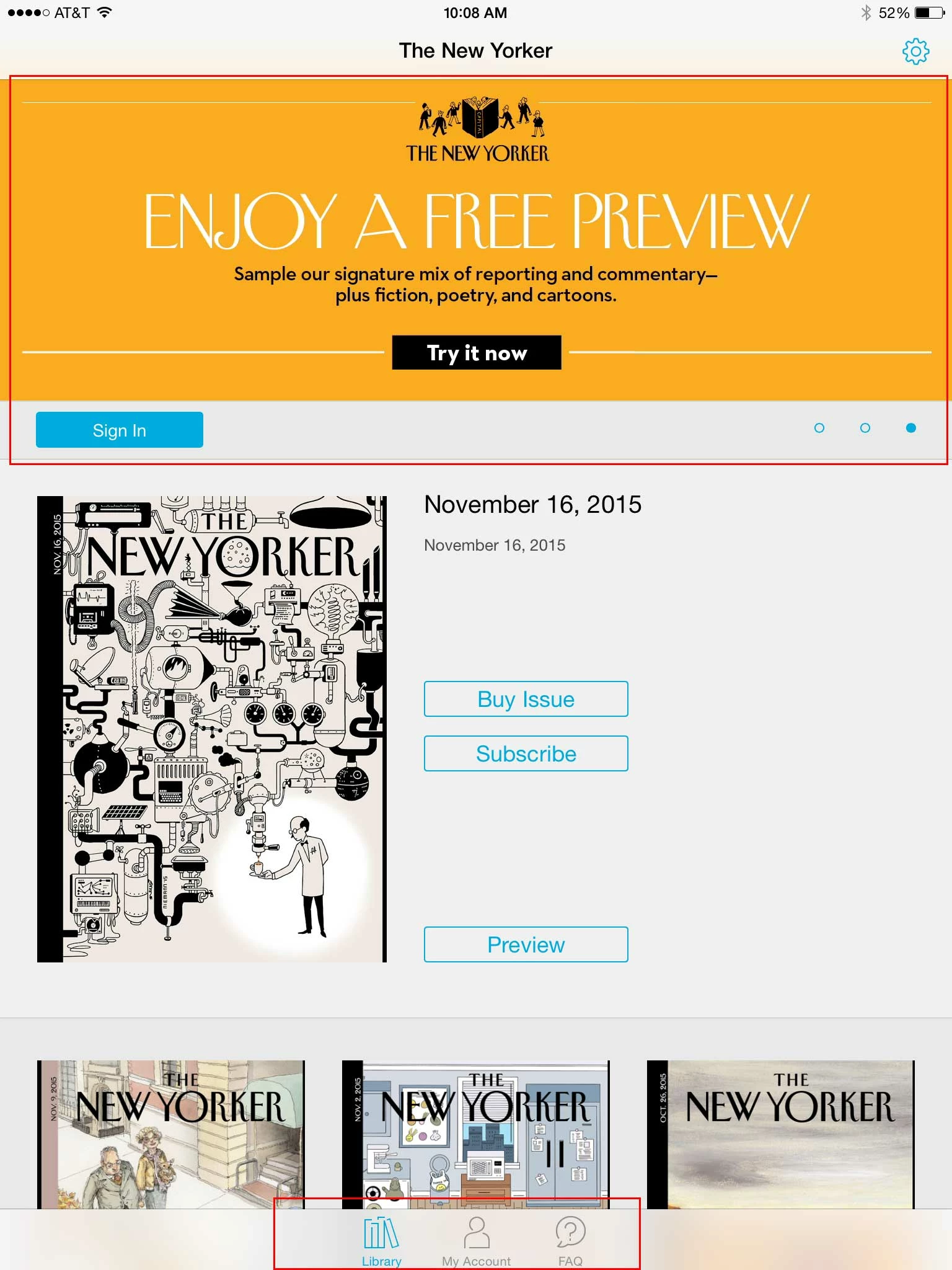 2, having boxes below in a scrolling frame which would link to other collections.