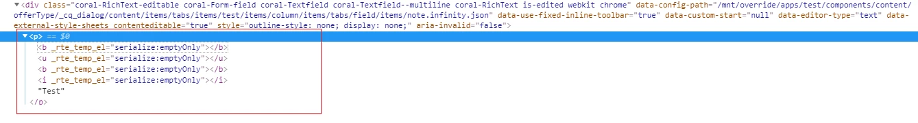 <b _rte_temp_el="serialize:emptyOnly"></b>. For each action it is creating a html element.