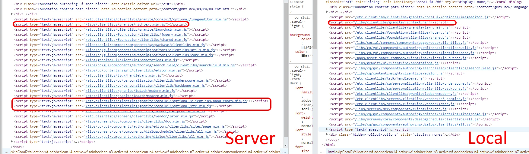 Server adding "/etc.clientlibs/clientlibs/granite/coralui2/optional/rte.min.js"