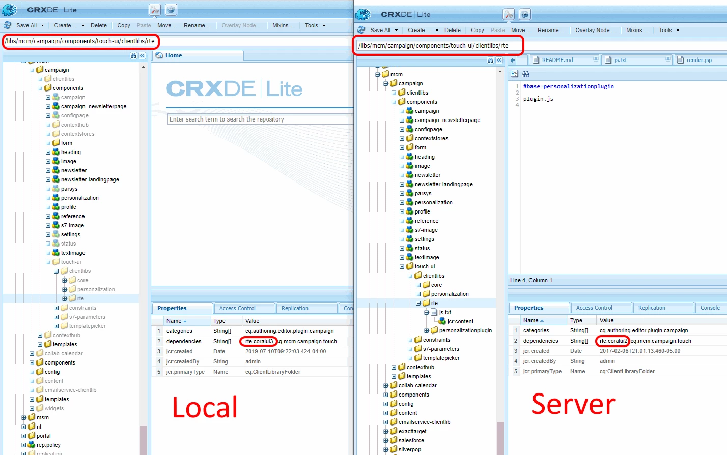 Dependency under "/libs/mcm/campaign/components/touch-ui/clientlibs/rte" is pointing to "coralui2"