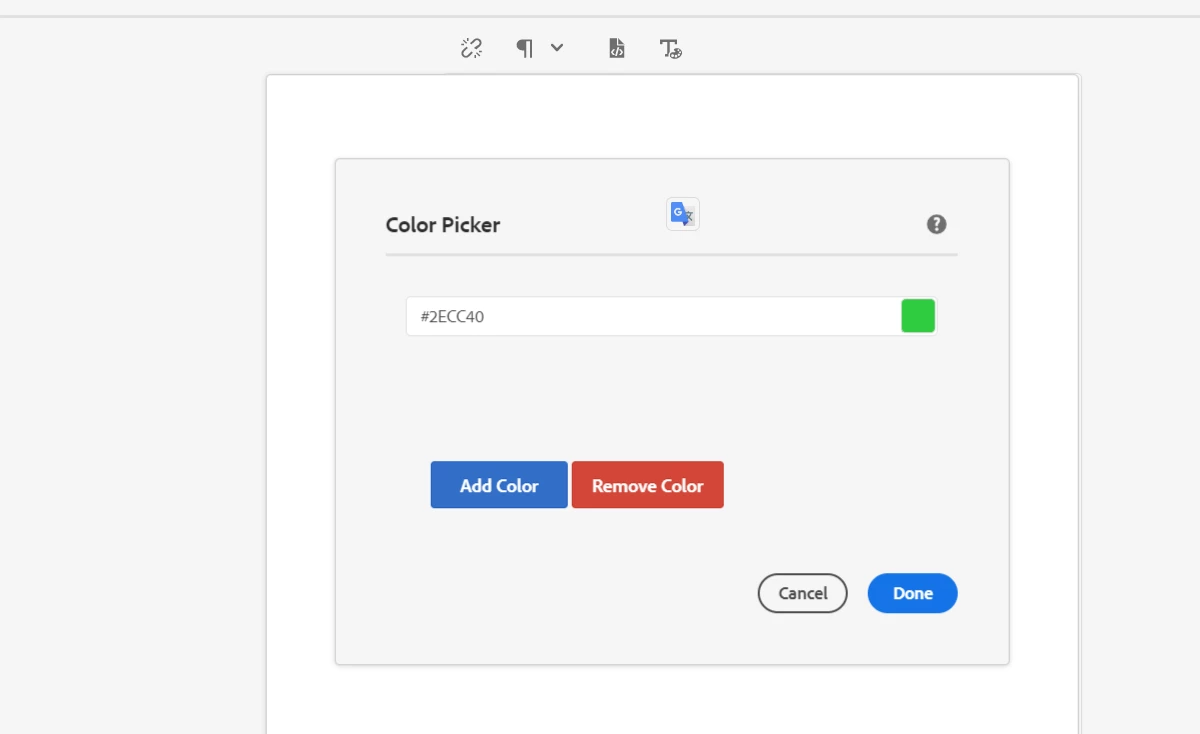 Above image is color picker implementation from my component which is working fine .