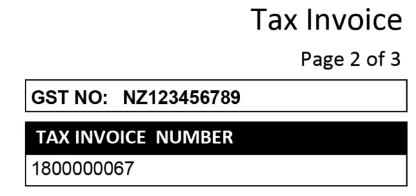 In the header it contains a logo, address, title and page n of m objects. It also contains three text fields: GST Number (A goods tax number), a title for either "CREDIT MEMO NUMBER" or "TAX INVOICE NUMBER" depending what type of document is used and the reference number for that credit memo or invoice as the client wants it to be shown on the top of each page when it overflows.