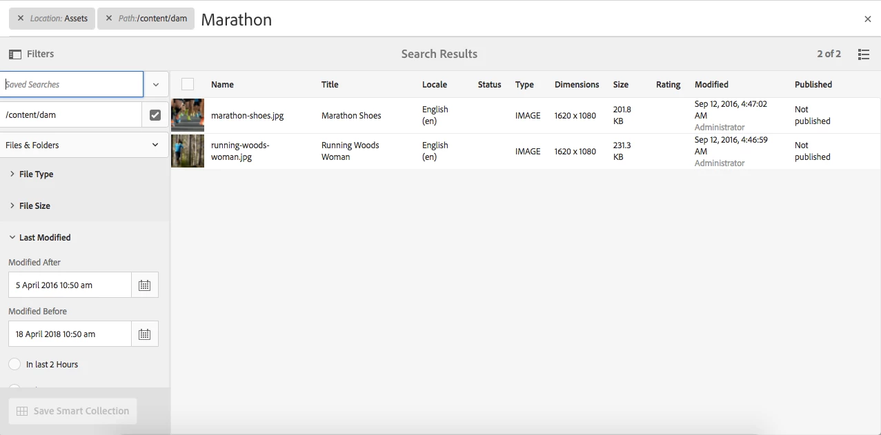 I am not able to save a search in AEM 6.4, The button Save Smart Collection is disabled. Any help is really appreciated.