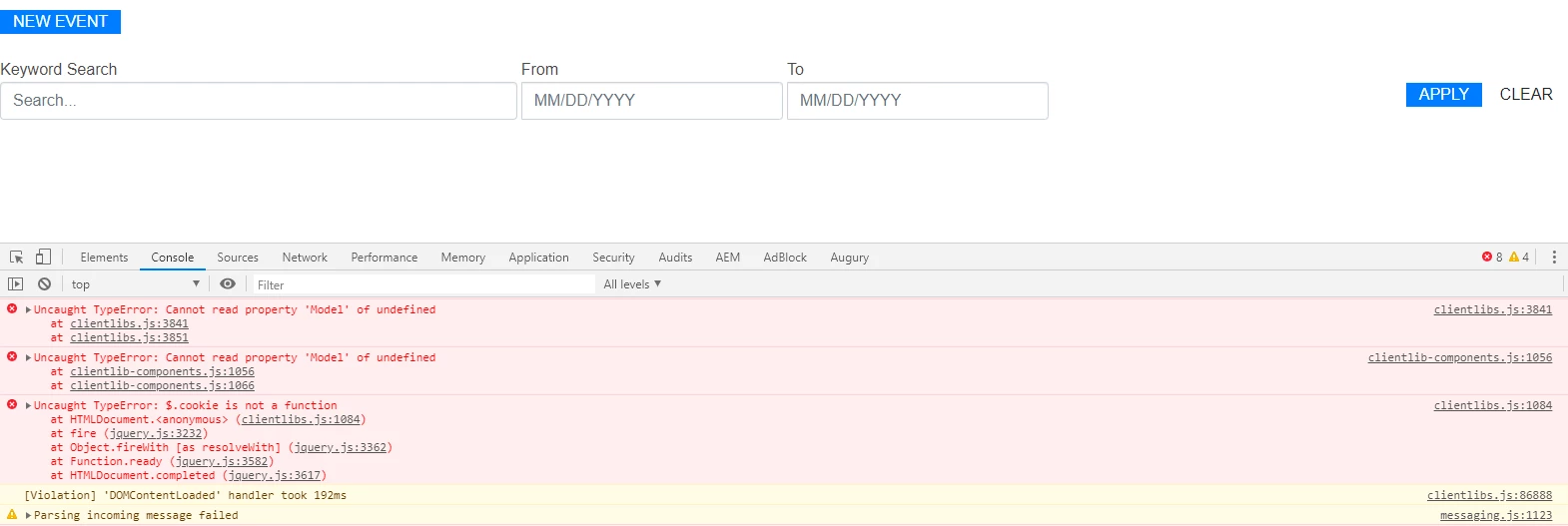 clientlibs.js:3841 Uncaught TypeError: Cannot read property 'Model' of undefined