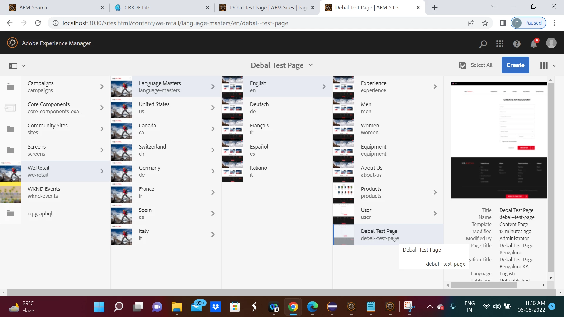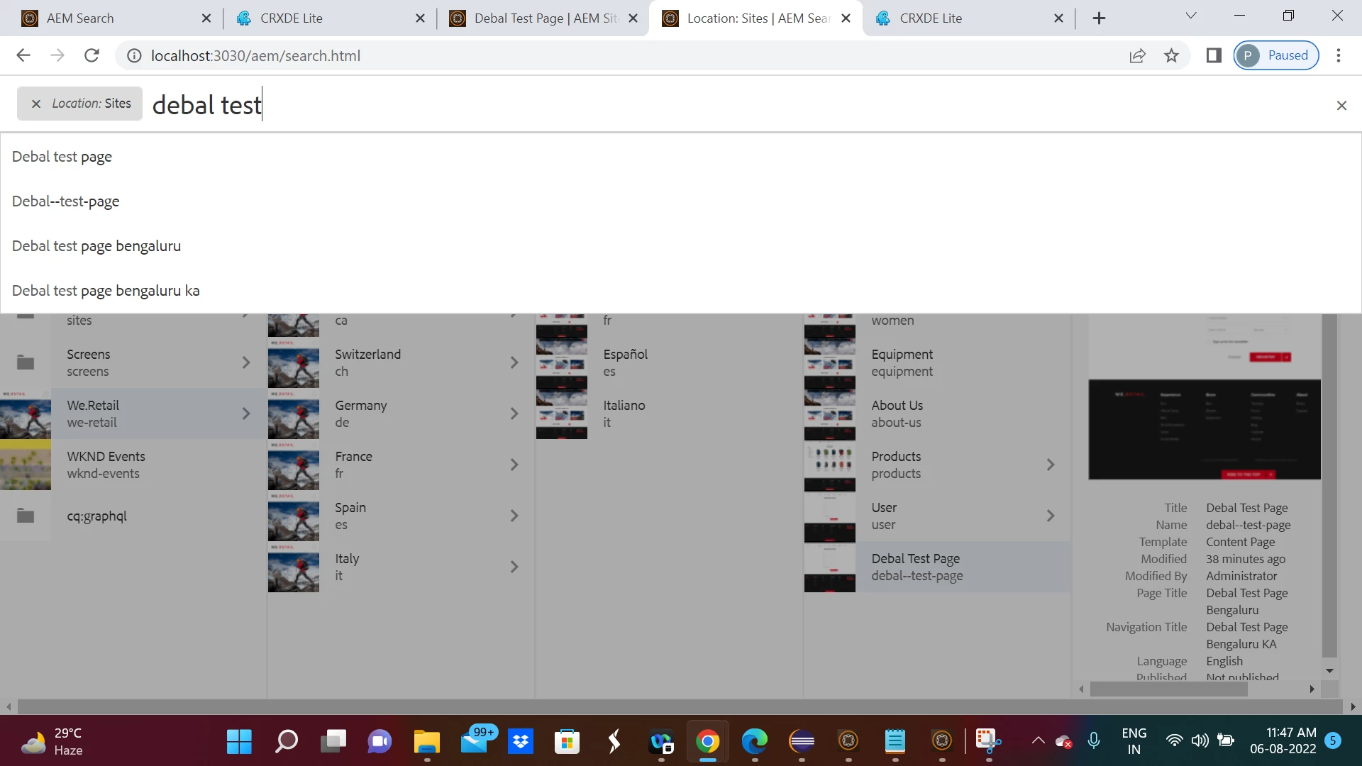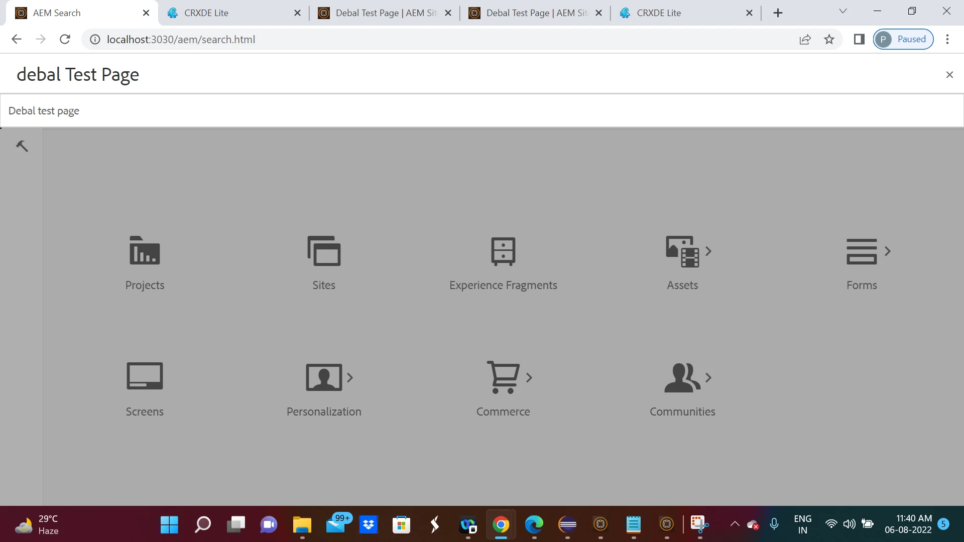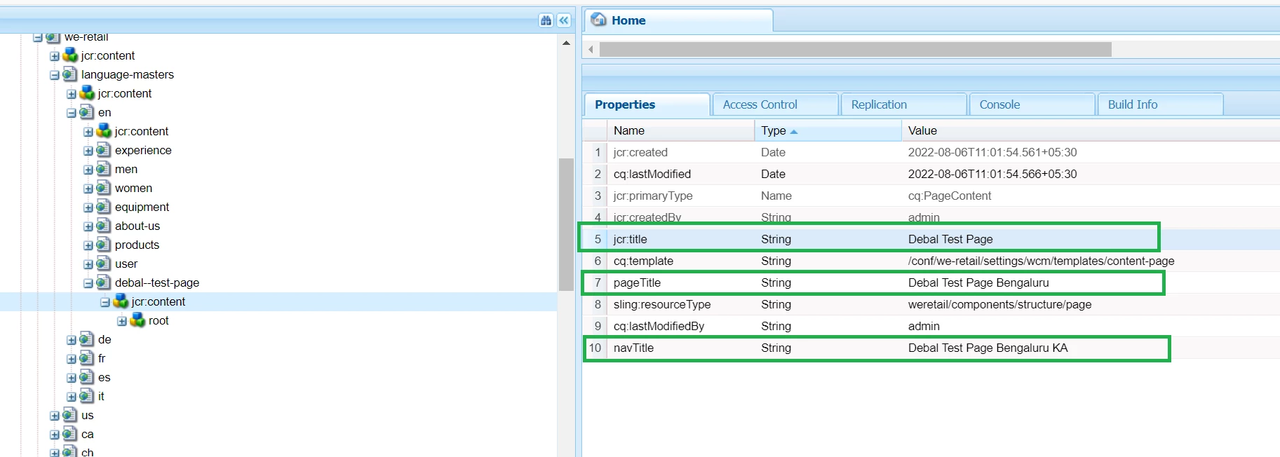 I have created one page with Title called (jcr:title) : Debal Test Page