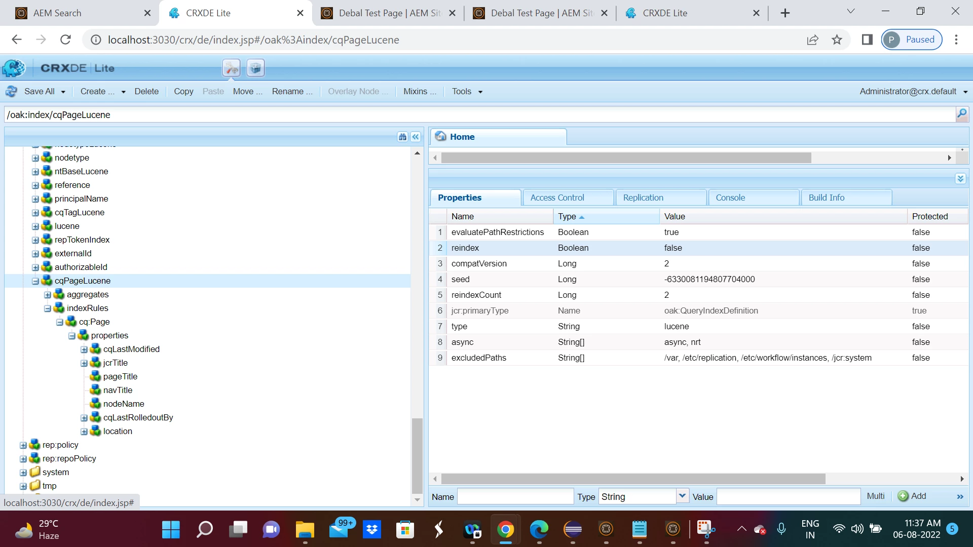 Then I did reindexing of /oak:index/cqPageLucene [made reindex property true and after sometime it changed the status to false ]