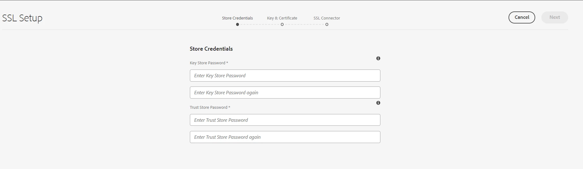 - Set Passwords for Key Store and Trust Store: