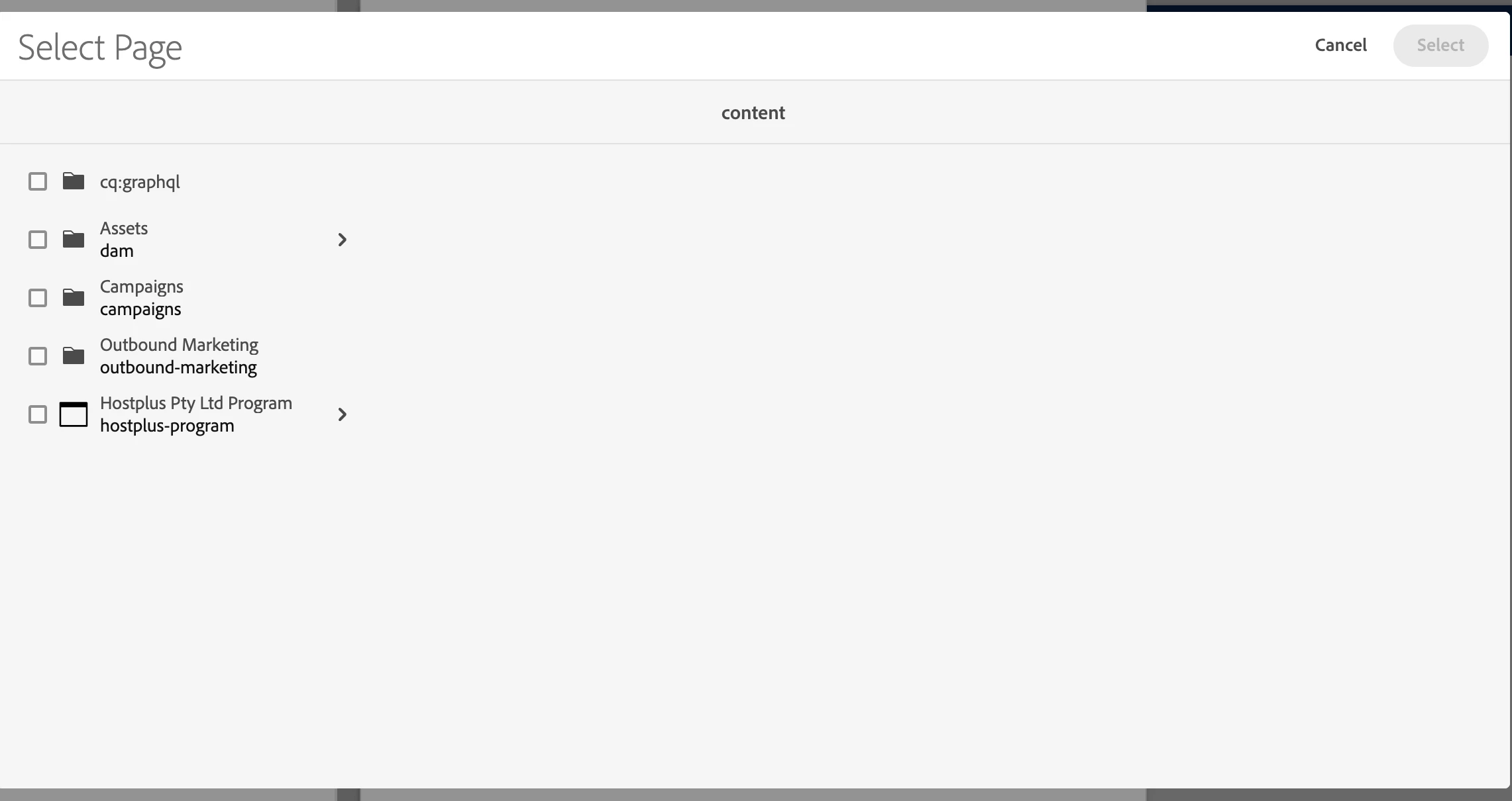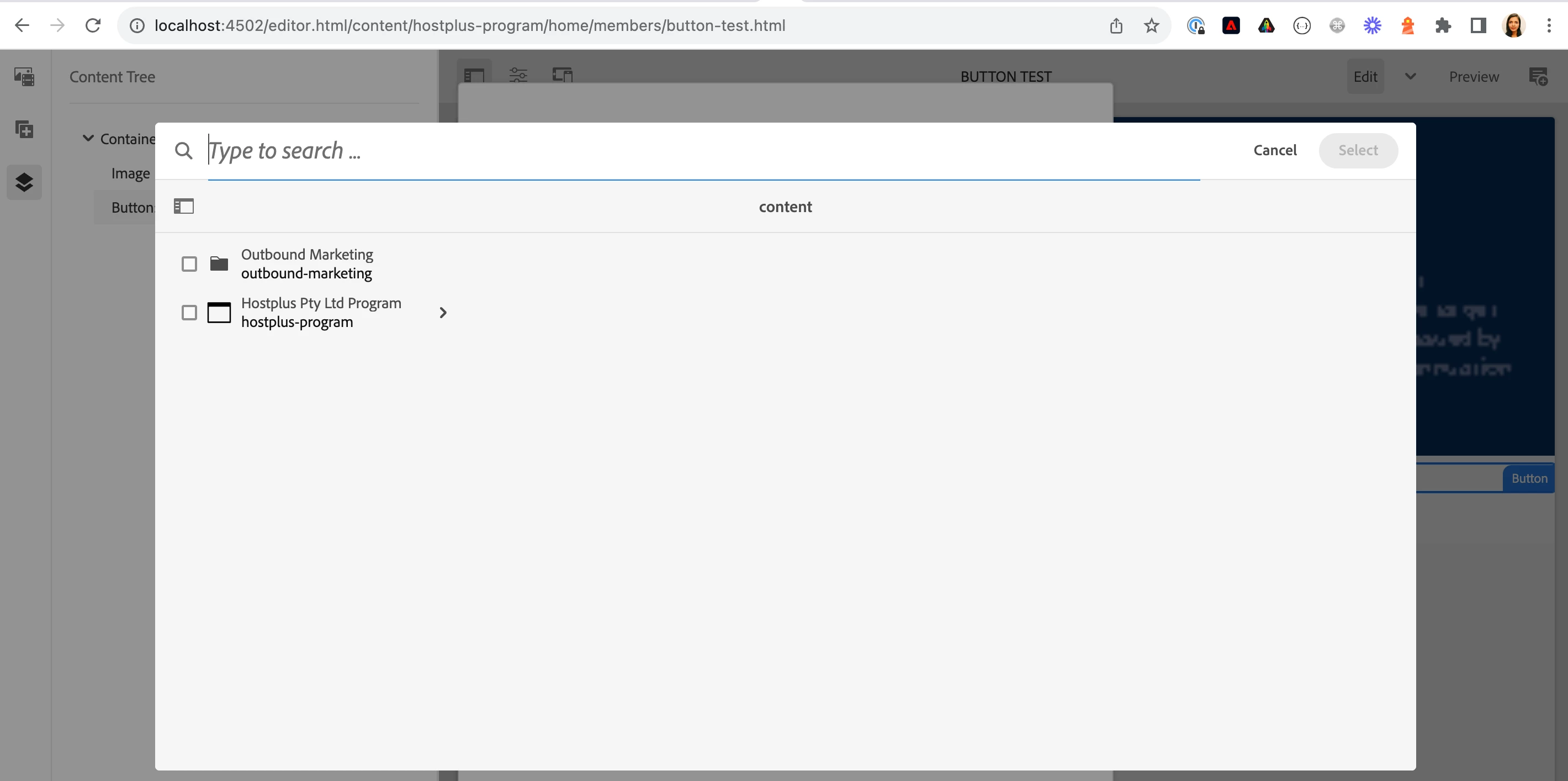 When we author button path it only shows content pages like below:
