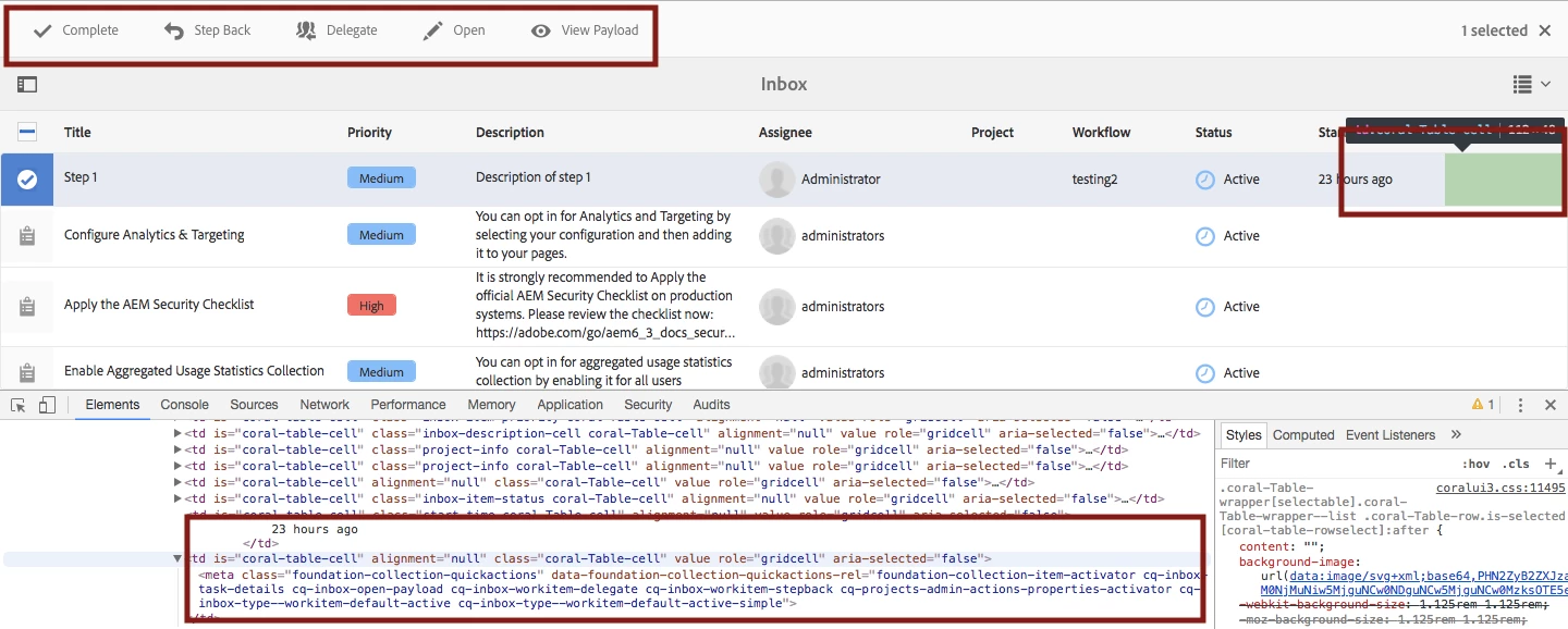 Show/hide custom button in http://localhost:4502/aem/inbox in vanilla AEM 6.4instance