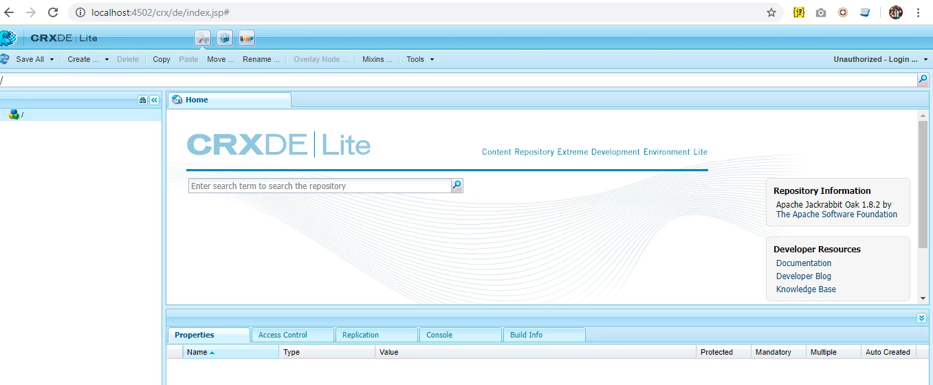 Not logged in then can not to connect localhost:4502/crx/de/index.jsp