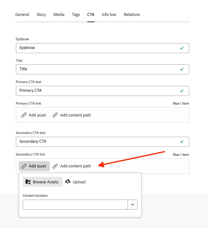 | Use-case: | Our CF models contain CTAs linking to pages. |