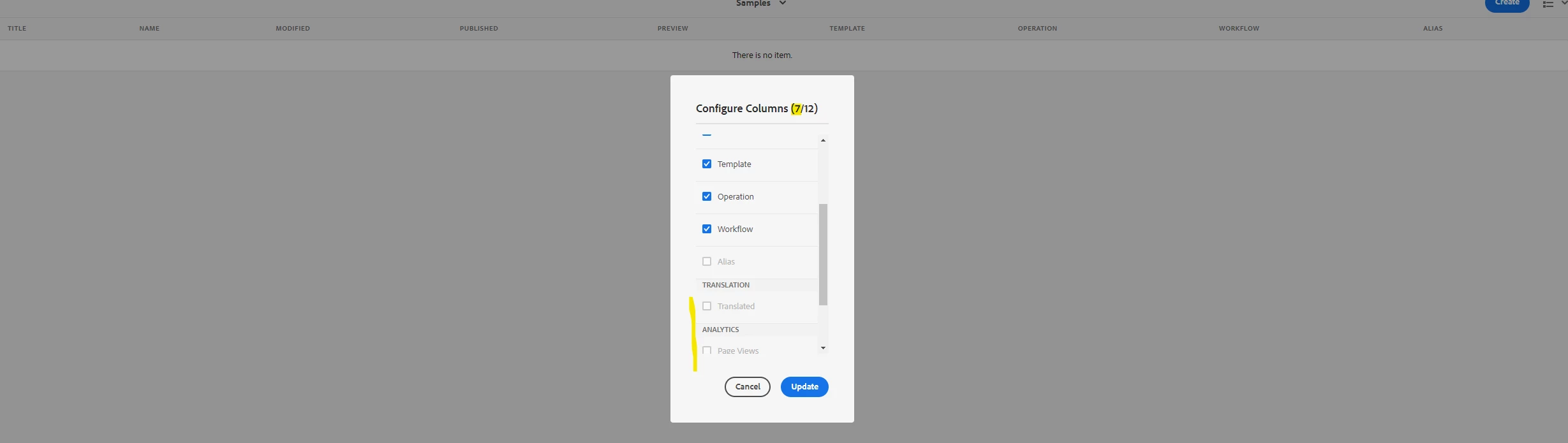 | Use-case: | As an editor I want to see despite the standard columns also ones showing e.g. translation status or analytics data at on glance. I want to be flexible which columns I want to see according to my field of works. |
