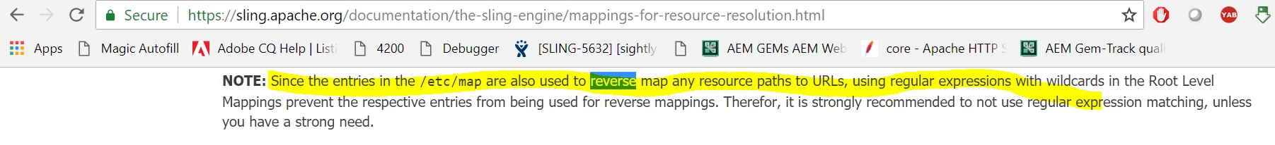 Sling Reverse Mapping ignoring parameters and special characters like #