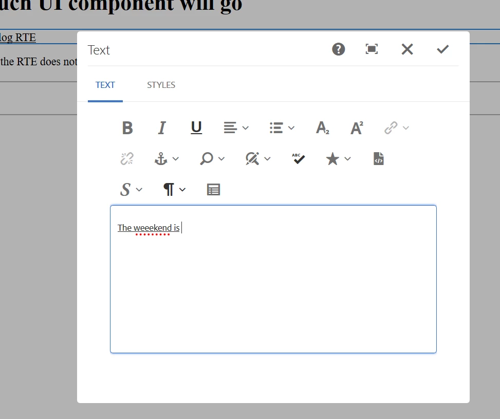 Spell check not working inside component but how ever it's working with inline editing RTE?