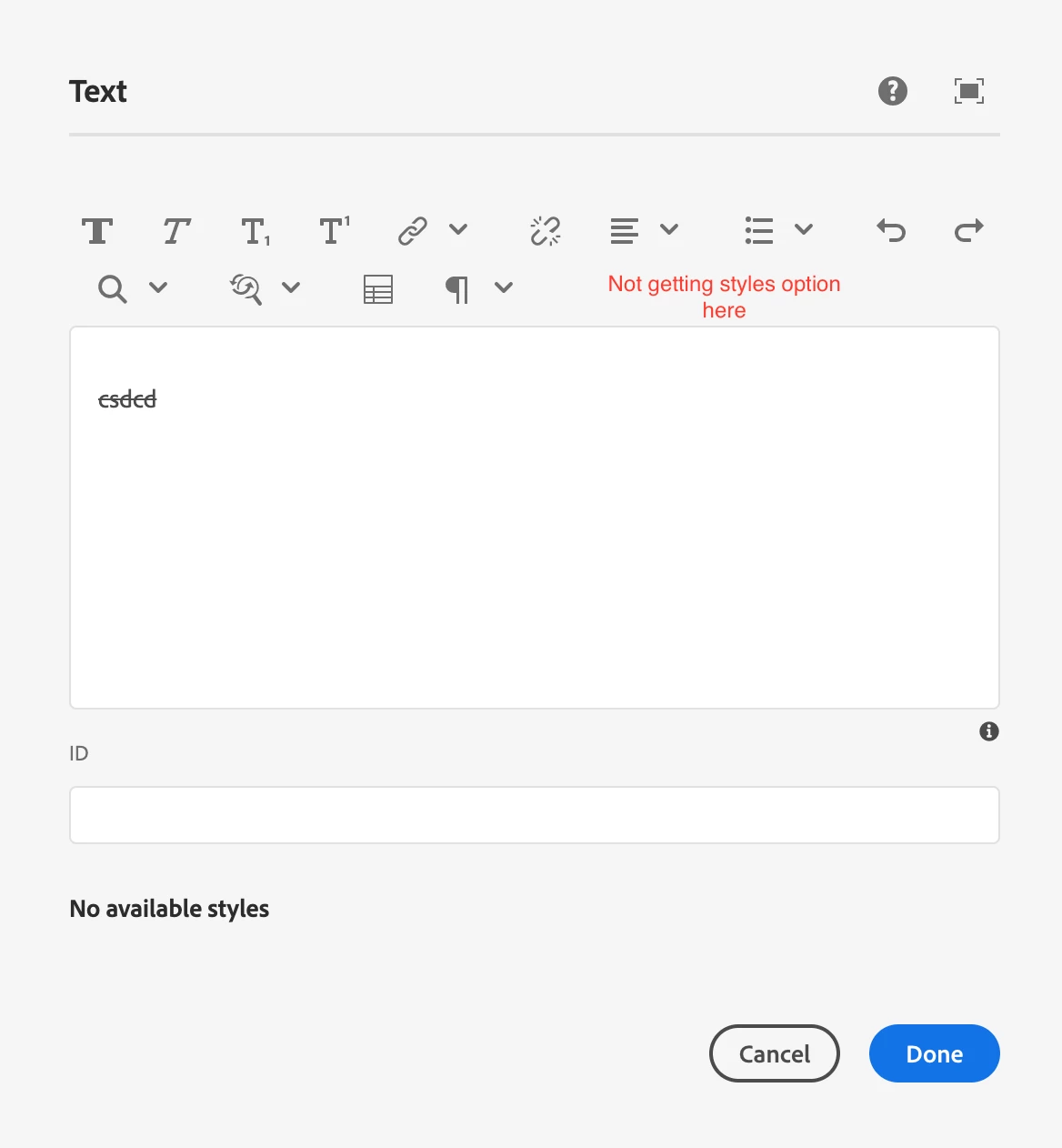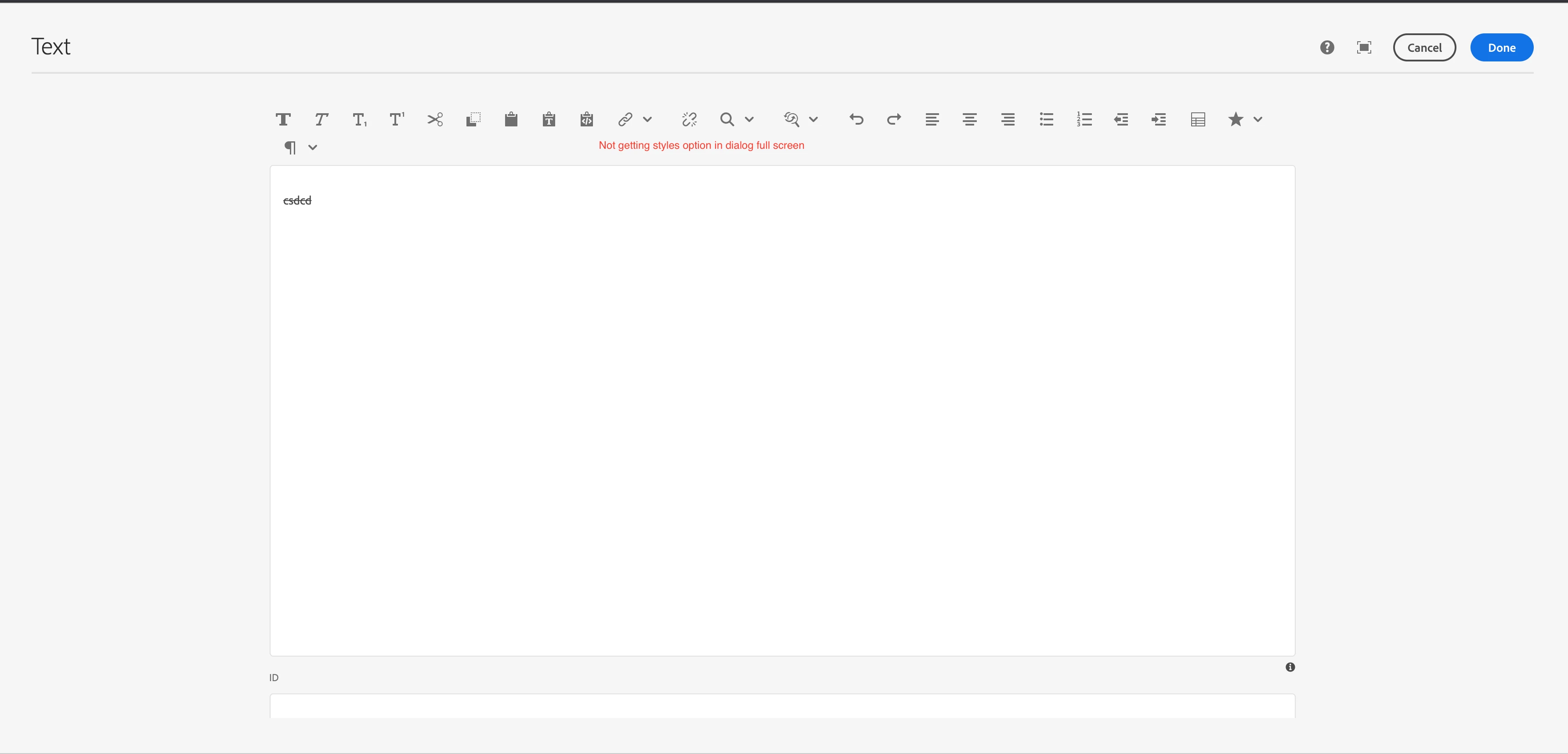 styles plugin is not getting enabled in dialog and dialog full screen mode