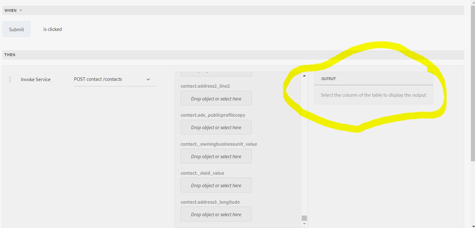 What else I tried: Submitting through "Invoke service"(My idea was for invoke service to return an id of newly submitted entry and assign it to a hidden field then make another call to submit to the Associated Entity using that Id). But that didn't work out well as per the following screenshot. 🙄