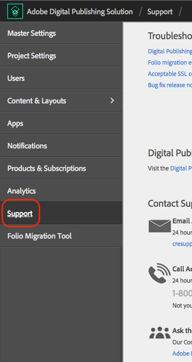 In the publish account homepage Adobe Digital Publishing Solution, the support link goes to Digital Publishing Solution Learn & Support and the contact support link goes to Adobe Digital Publishing Solution publish account homepage that ink to the Digital Publishing Solution Learn & Support where the contact support link goes to Adobe Digital Publishing Solution publish account homepage where ....