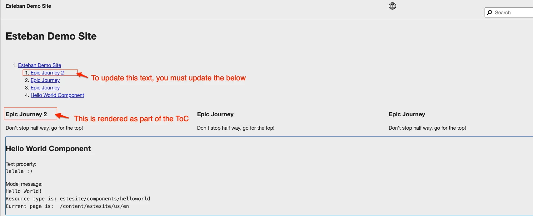 Hi, Table of contents is a core component and it seems to suit our project requirements well. I have created a copy of it with supertype pointing to the ootb component. But, I do not require the page name that's displayed as part of the TOC list. I tried to check the implementation and seems like a filter is being used which I am unable to delegate. Moreover, the rendering of the component is not in html and I am trying to see how the rendering is done. Any information on the end-end flow of the component functionality will be useful to achieve my requirements. Thanks !