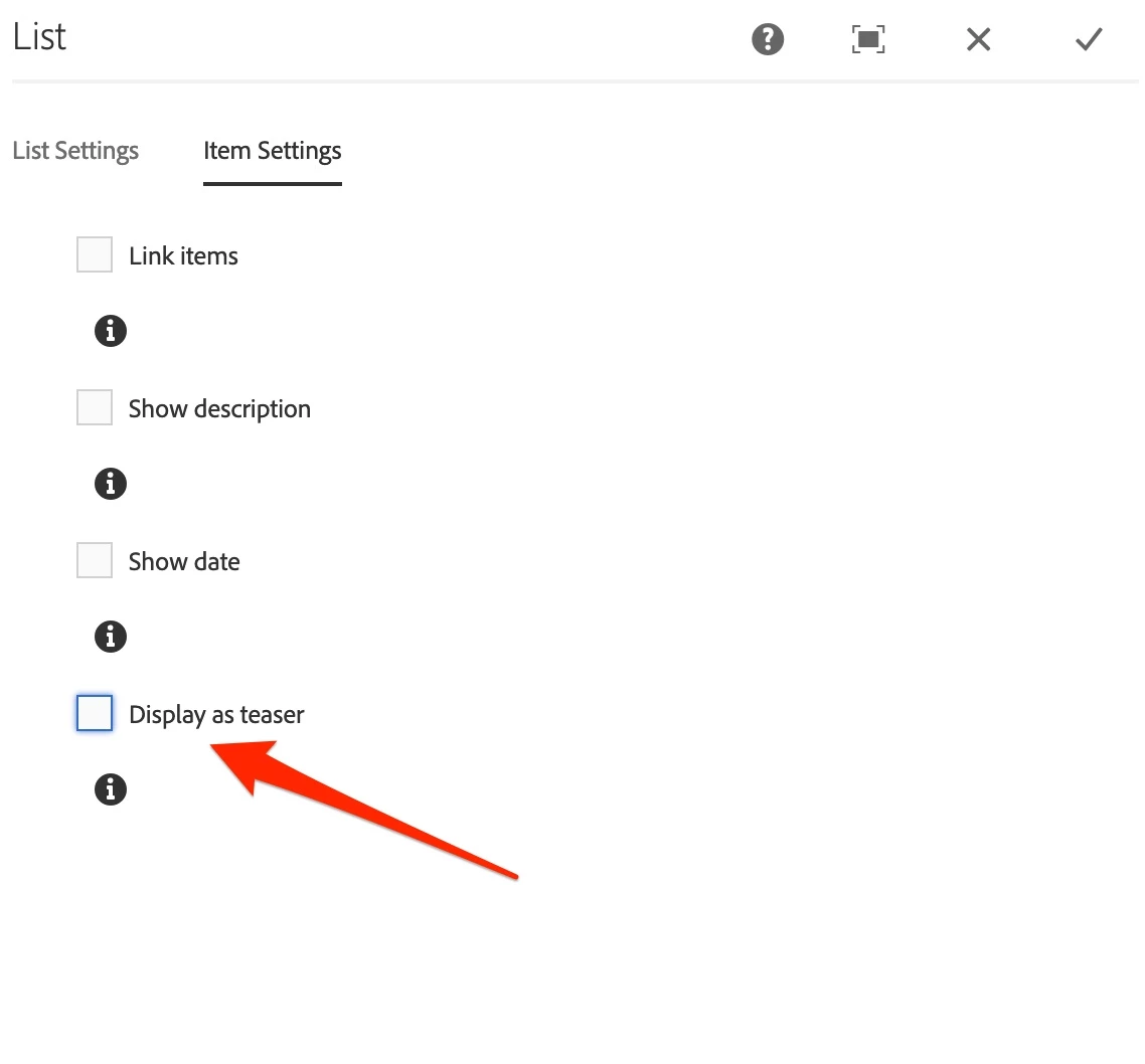 ${item.teaserResource} there is no resource, it is coming as null. How do we configure list component to use teaserDelegate? Is there any step I am missing?