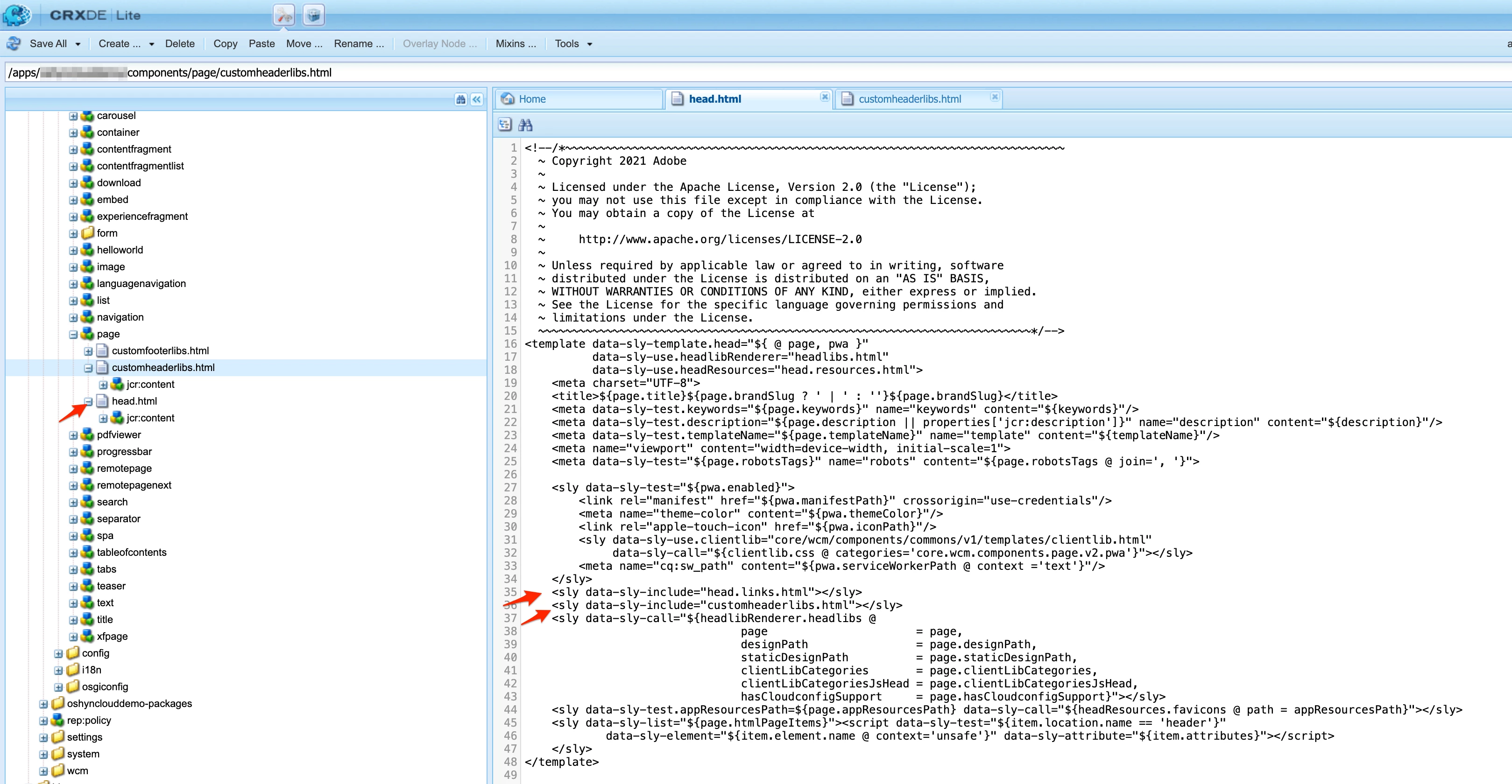 - Sling Filter that injects this on all HTML requests